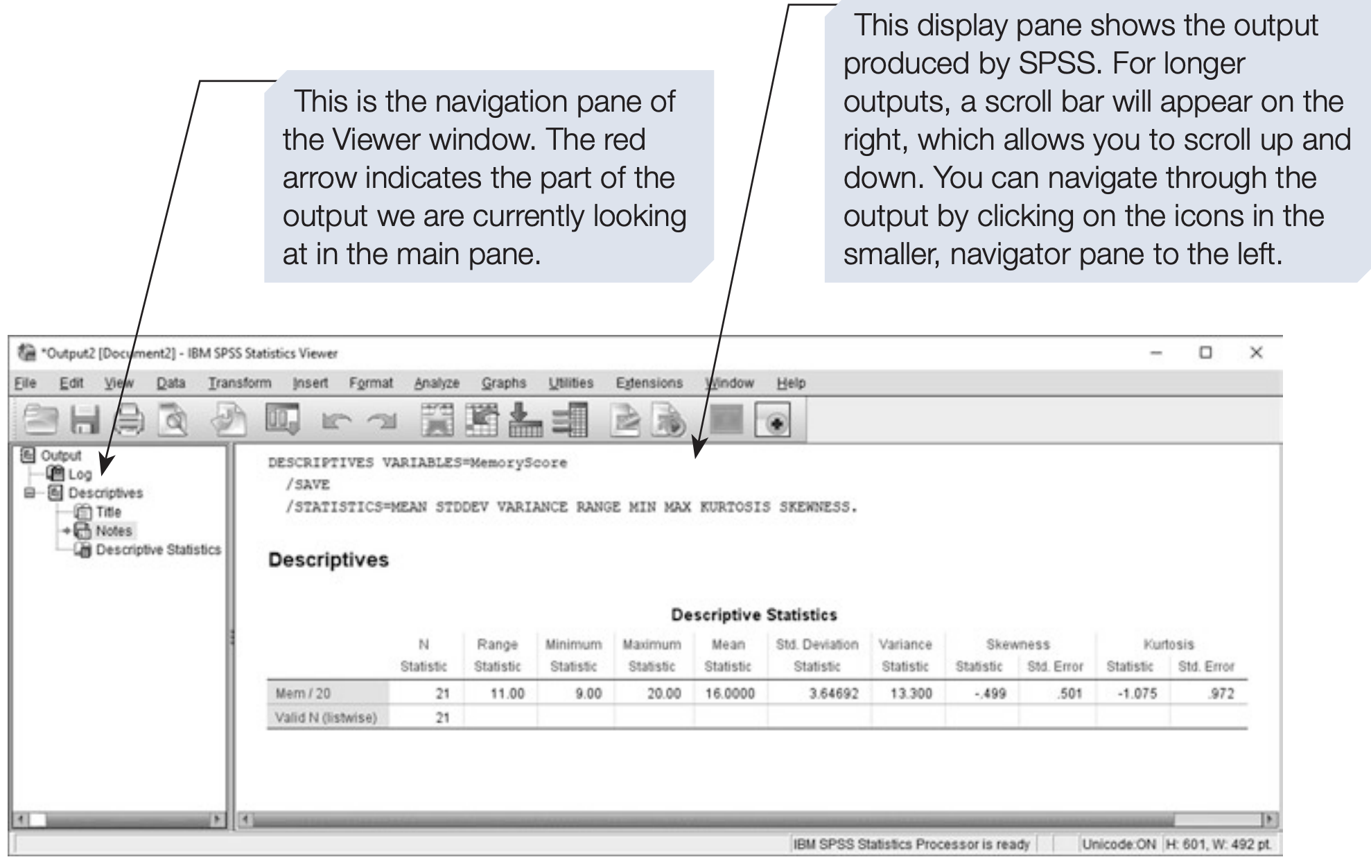 We will explore how to use the Descriptives command to produce basic summary statistics, understand how SPSS displays results, and learn to navigate the Viewer window.
