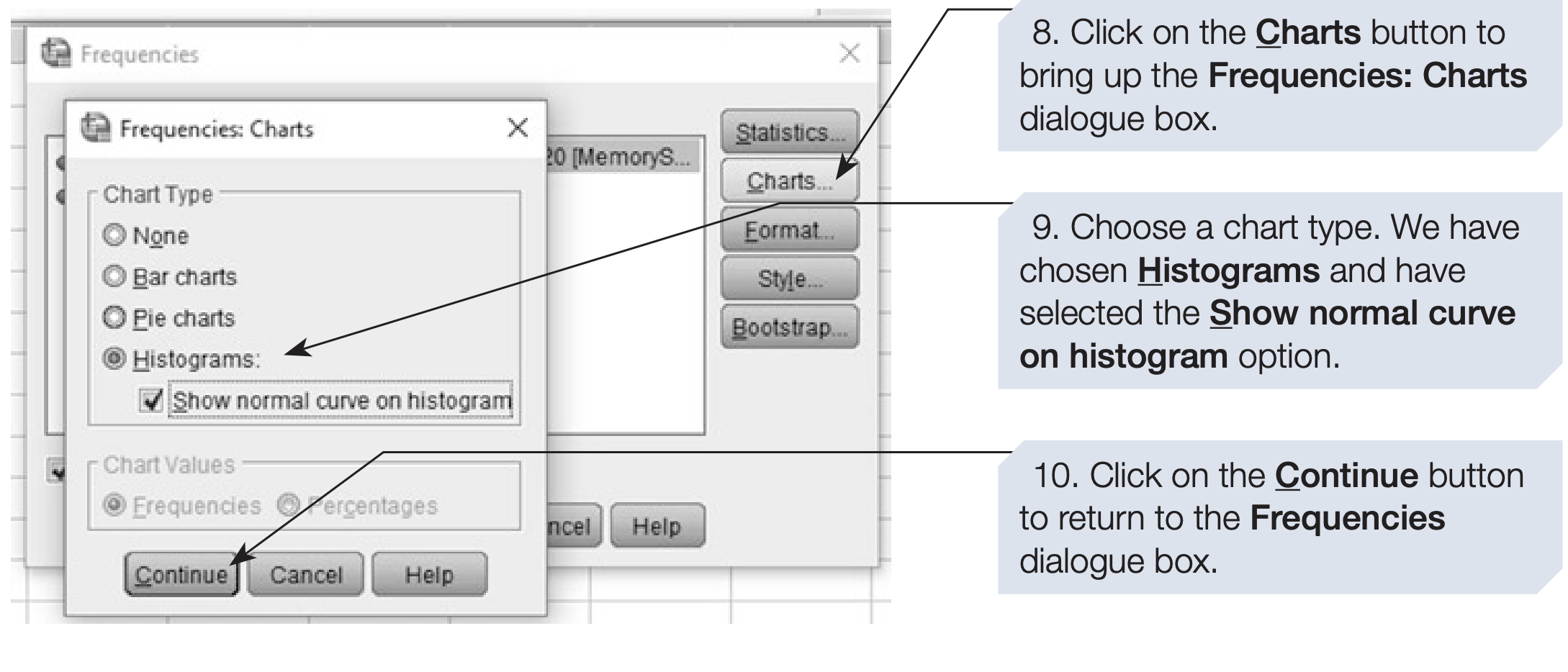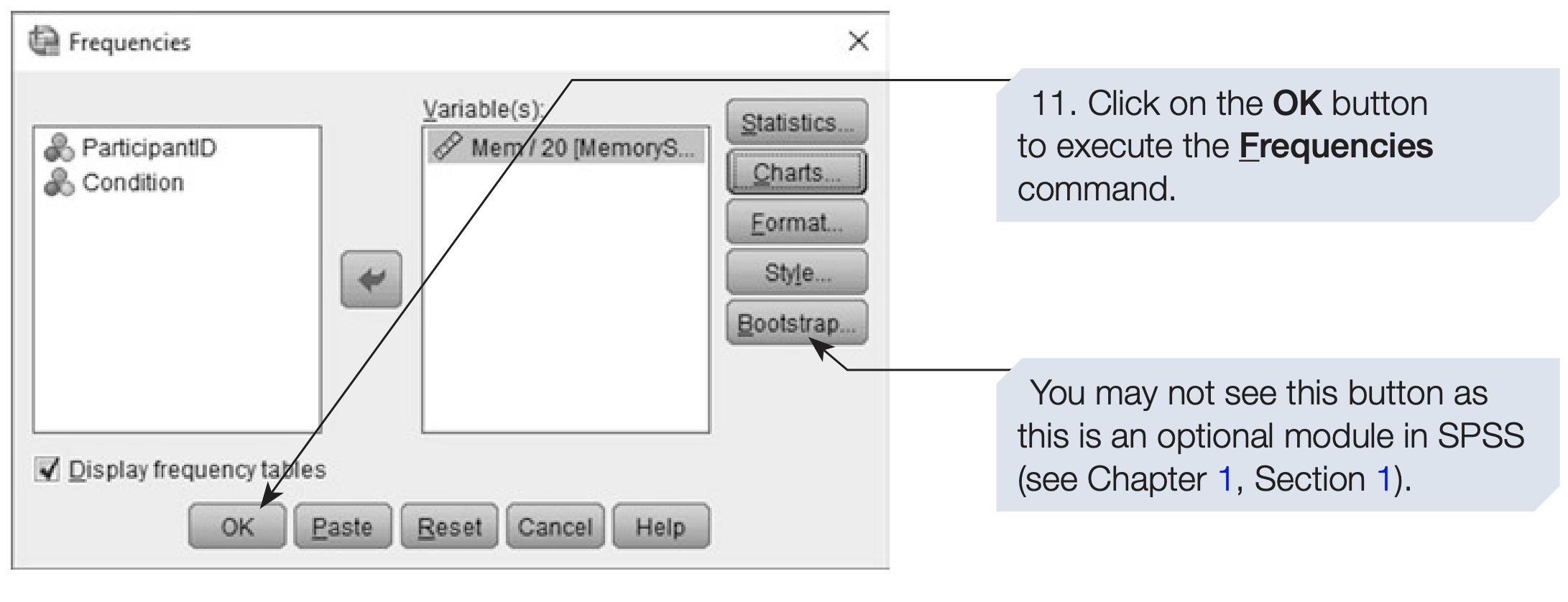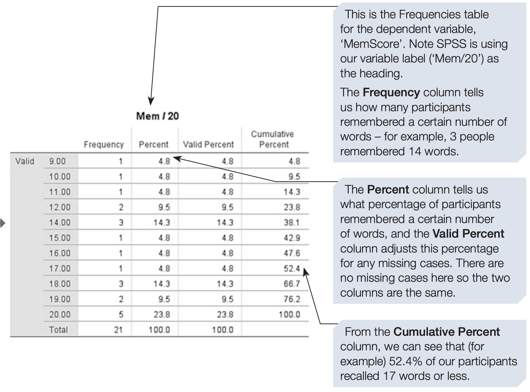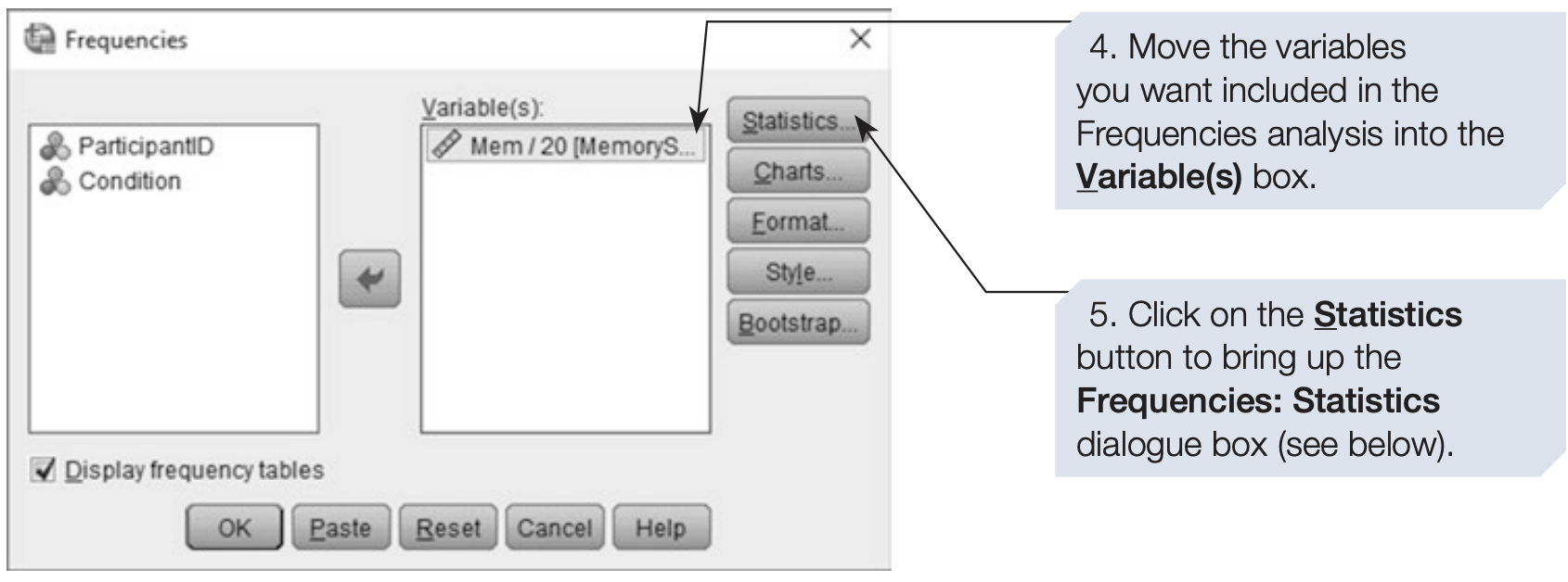 FREQUENCIES VARIABLES=MemoryScore