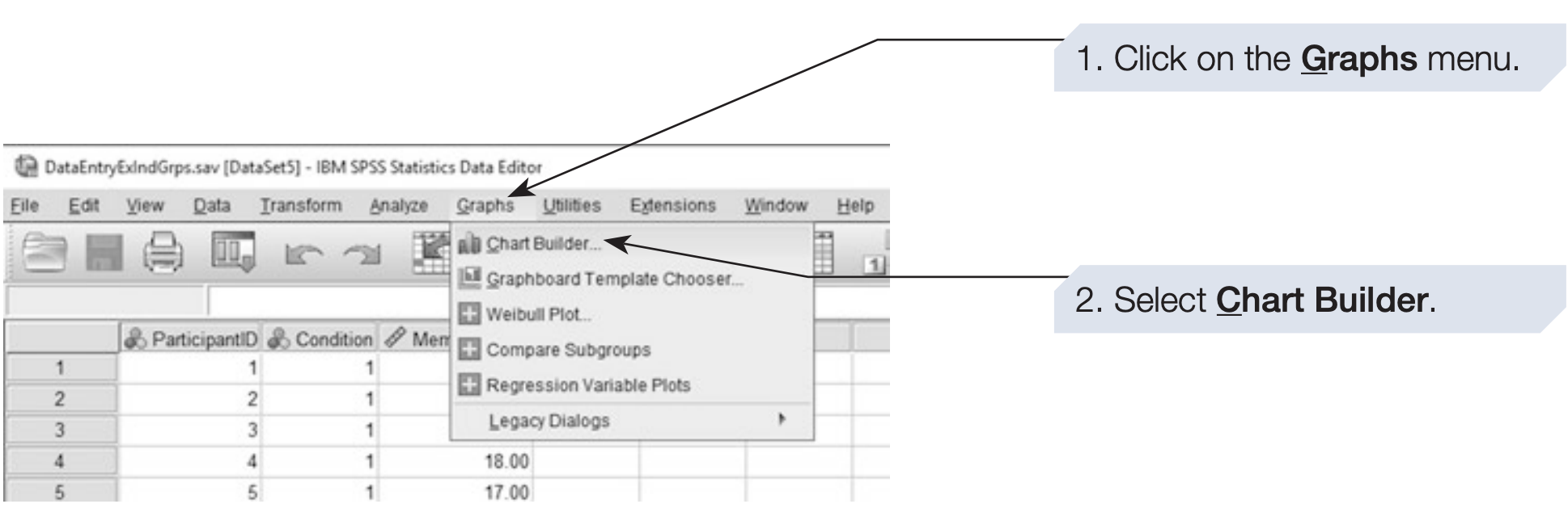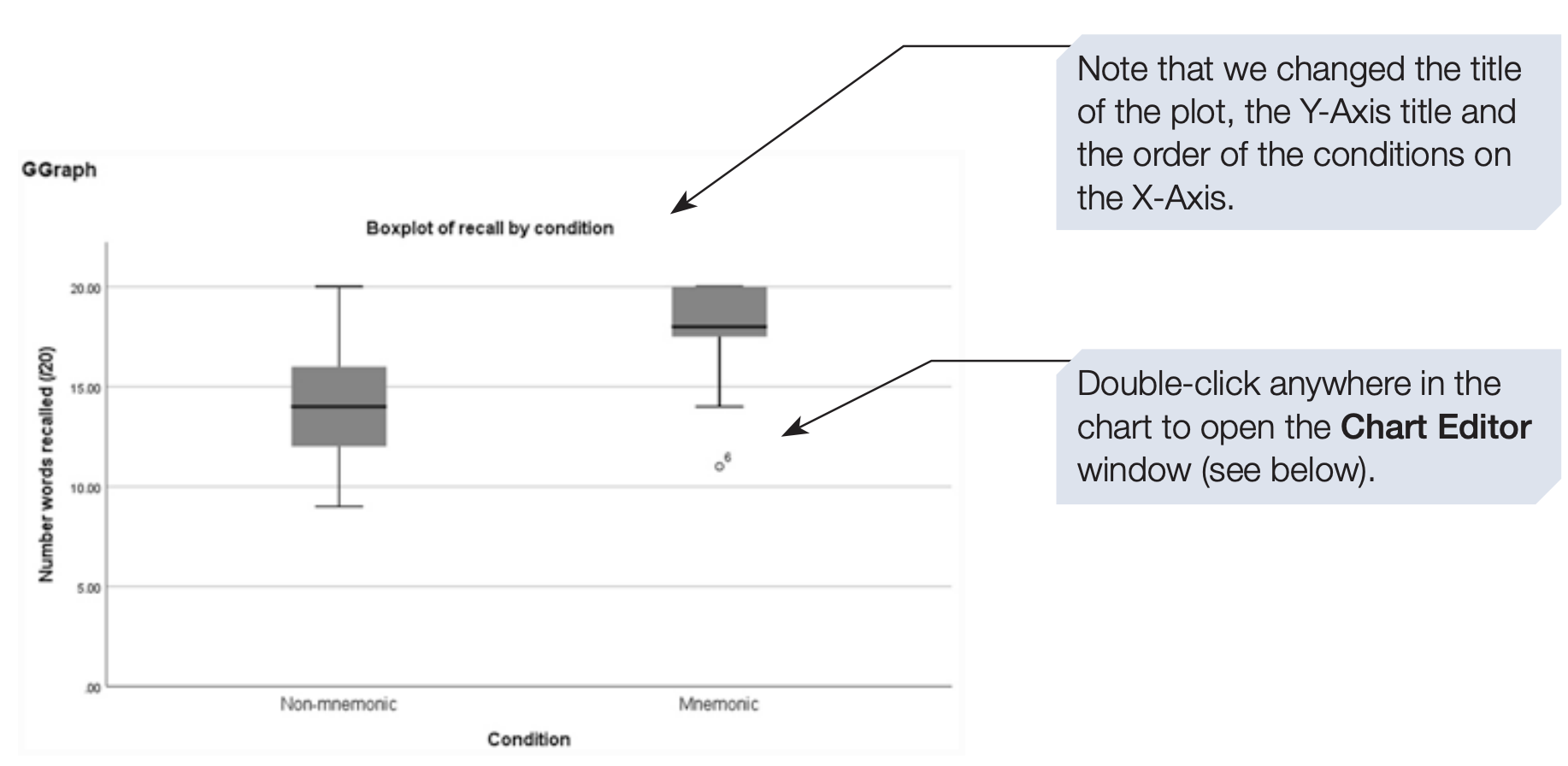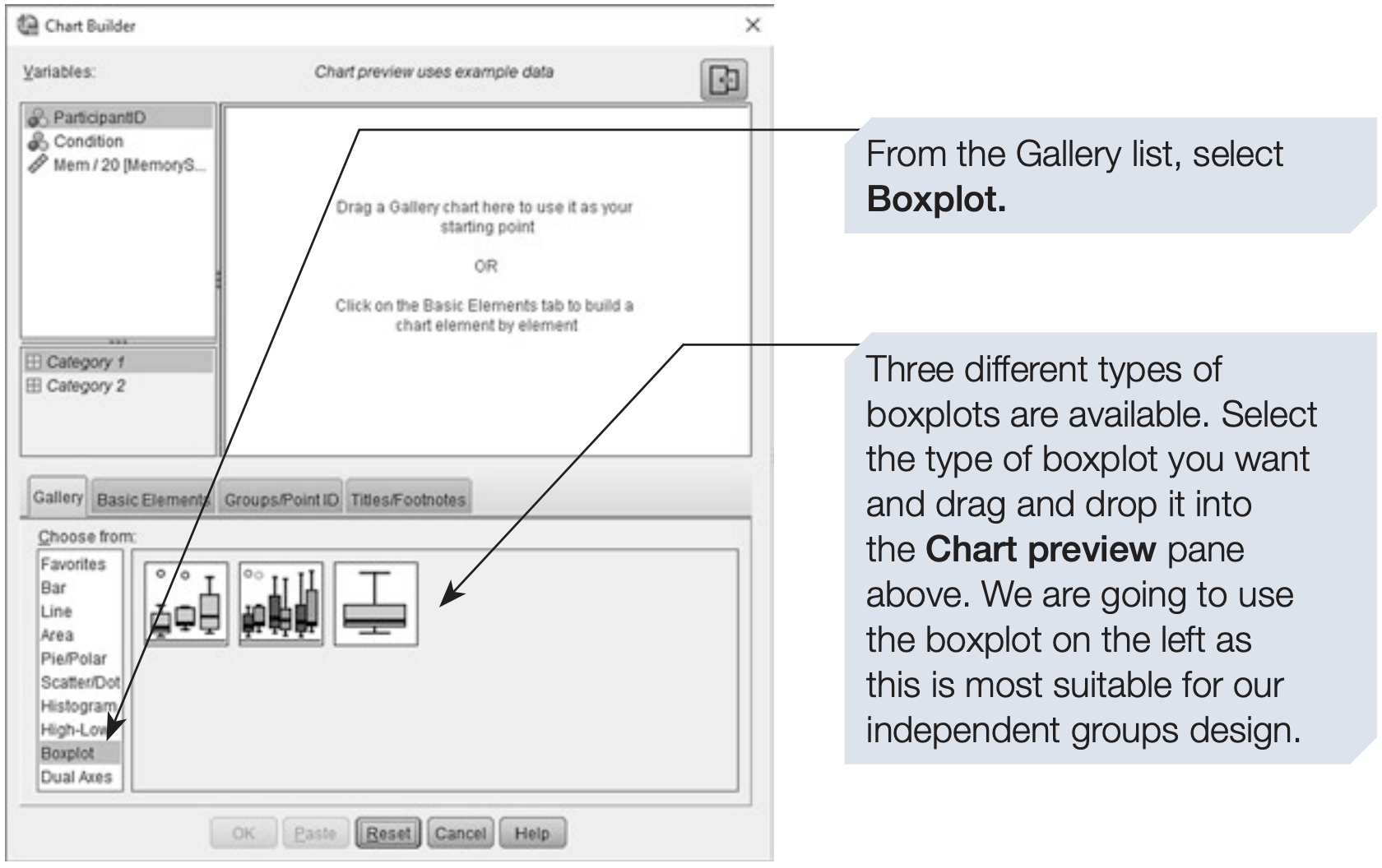 We will now demonstrate how to use the Chart Builder to produce a boxplot for the memory study dataset.