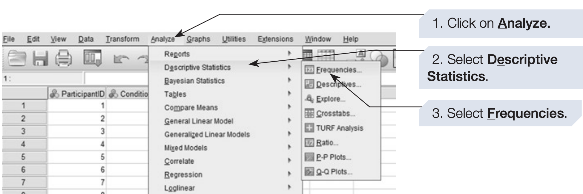 The Frequencies command is another useful tool for exploring data distributions, particularly for categorical or discrete variables.