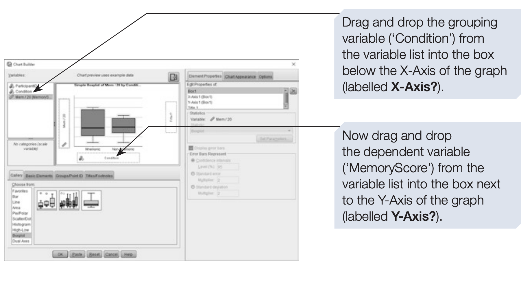 We will now demonstrate how to use the Chart Builder to produce a boxplot for the memory study dataset.