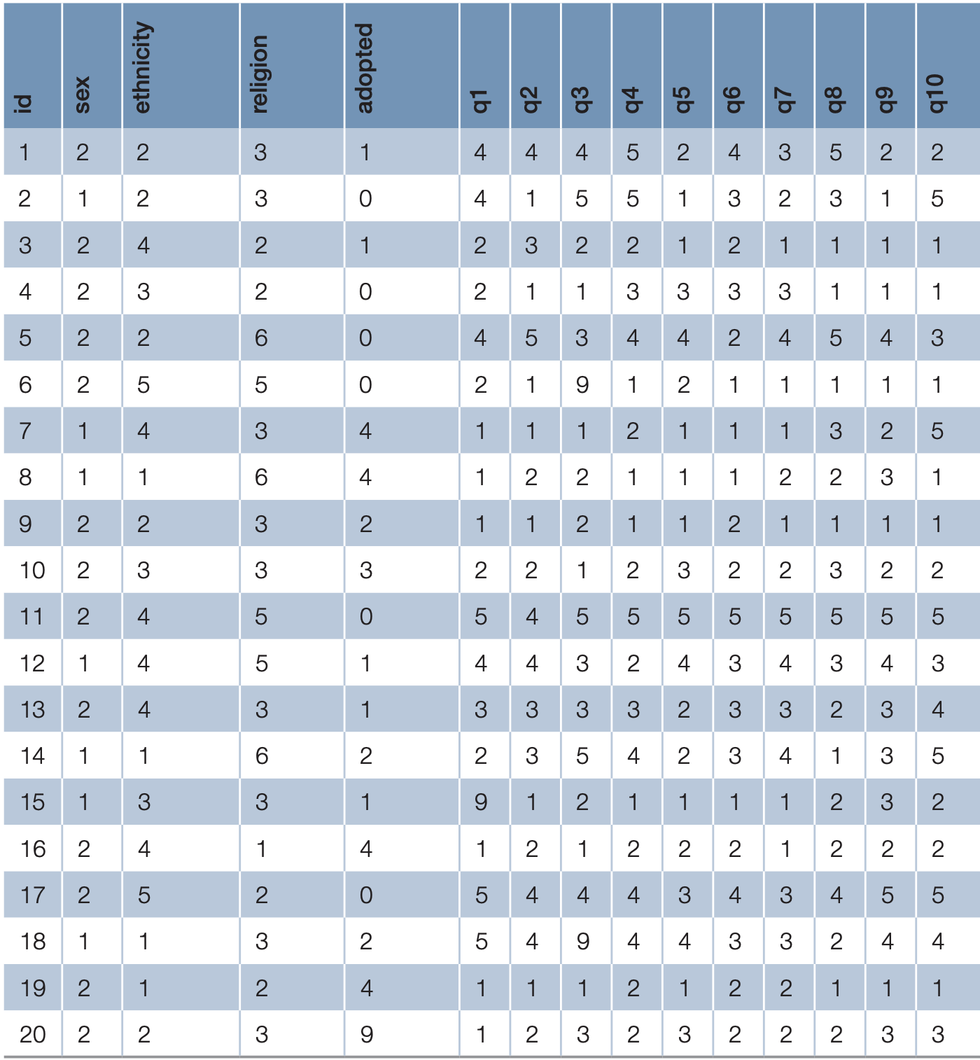 To illustrate the use of these commands, we will use a small dataset (download adoption_survey.xlsx) based on a fictitious survey exploring people’s attitudes toward adoption.