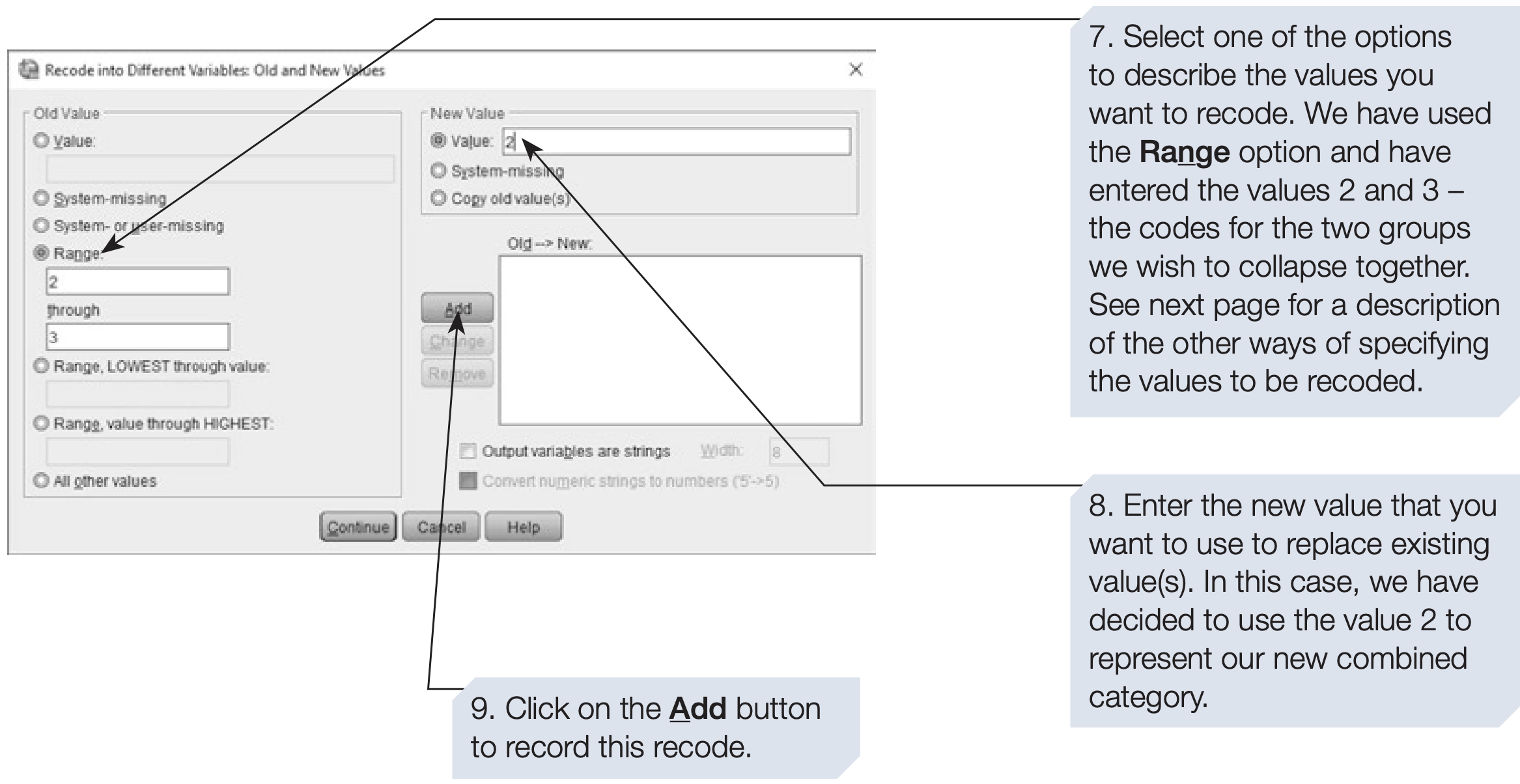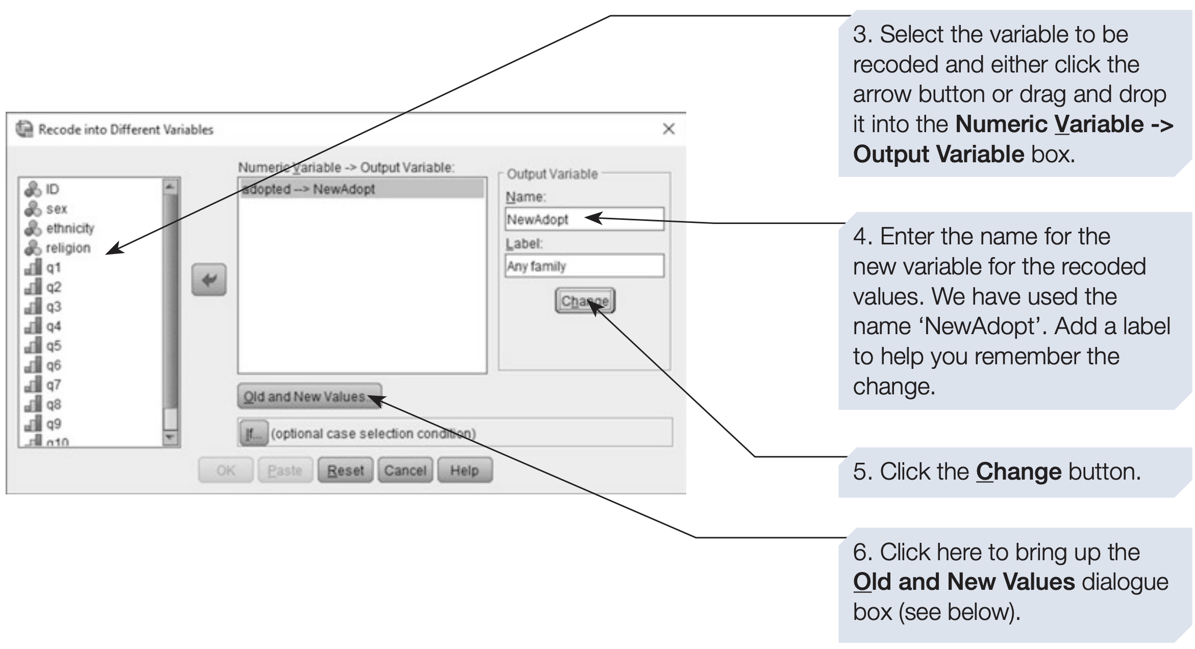 Tip: Always use Recode into Different Variables to preserve the original data in case of mistakes.