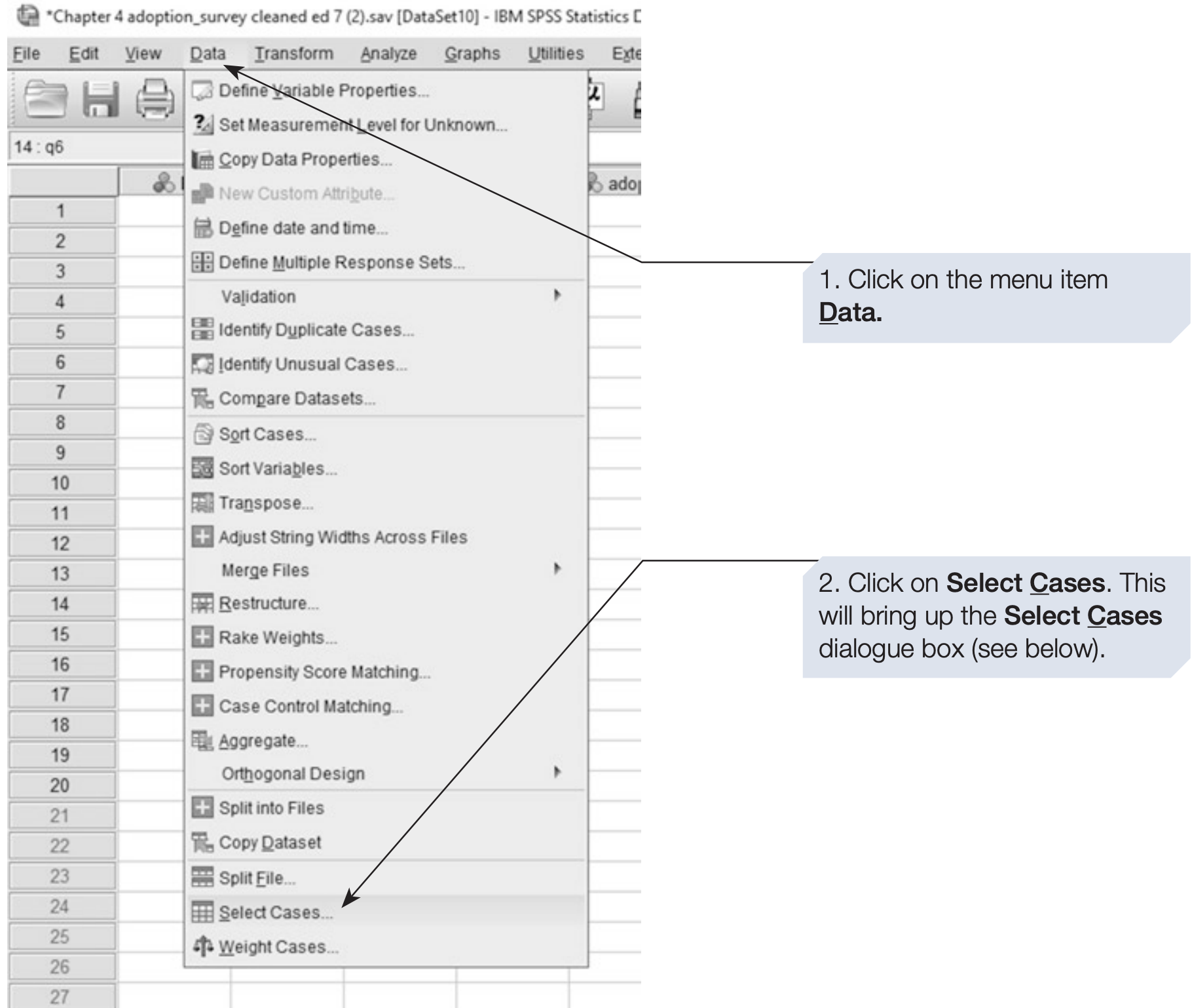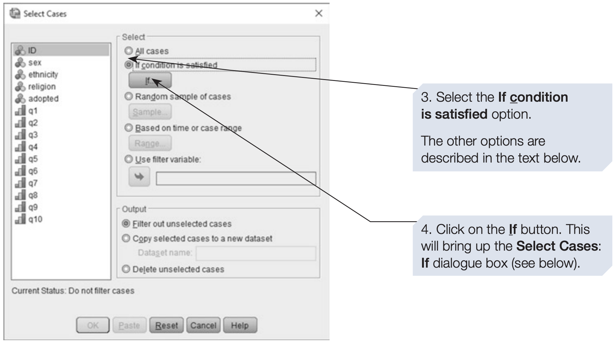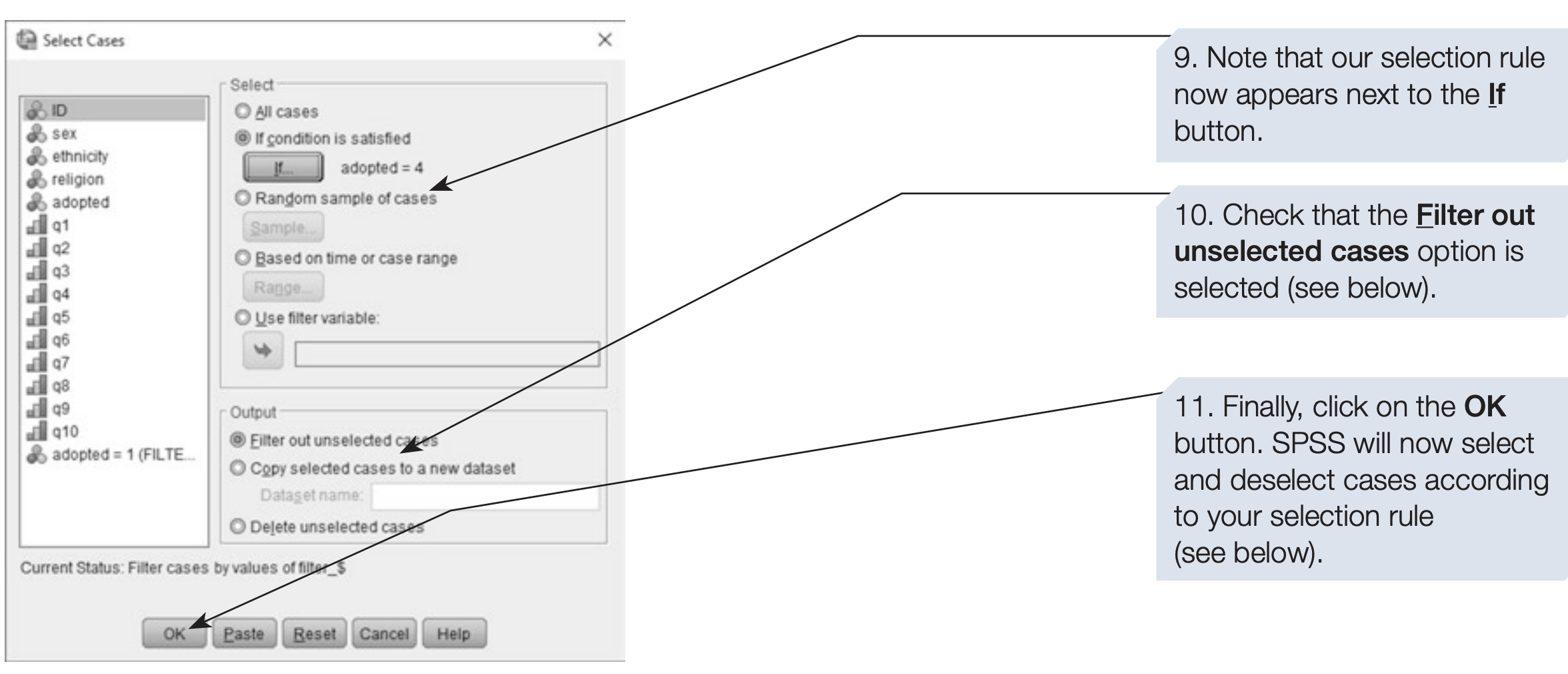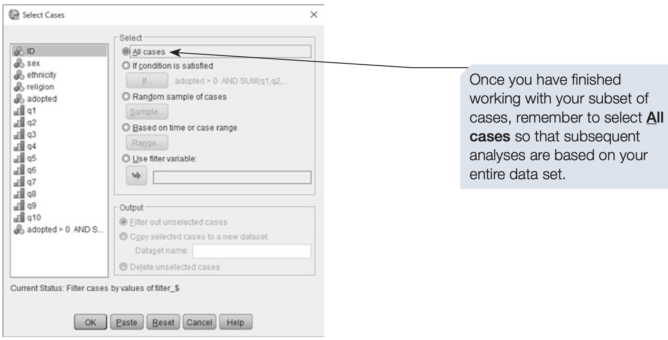 USE ALL. COMPUTE filter_$ = (adopted > 0). FILTER BY filter_$. EXECUTE.Select using logical conditions (e.g., Chinese Christians with adoption experience)