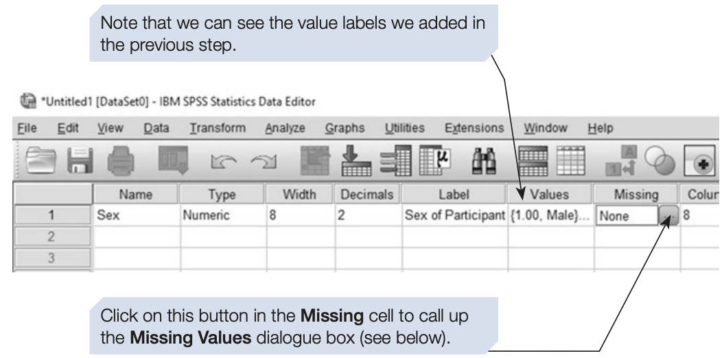 - Apply value and variable labels where appropriate and specify the level of measurement and the missing values for each variable.